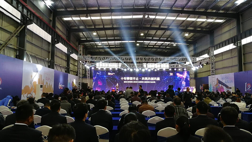2018年12月6日,安徽半岛电竞在美丽的珠城蚌埠举行“十年攀登不止·共筑共创共赢”2018商务大会,会上隆重举行了半岛电竞起重机销量突破万台庆典暨全球客户培训体验中心蚌埠基地开业,同时发布了半岛电竞C系列起重机家族的又一位新成员TC800C6和超大米数蓝牌高空作业车PTA220C。