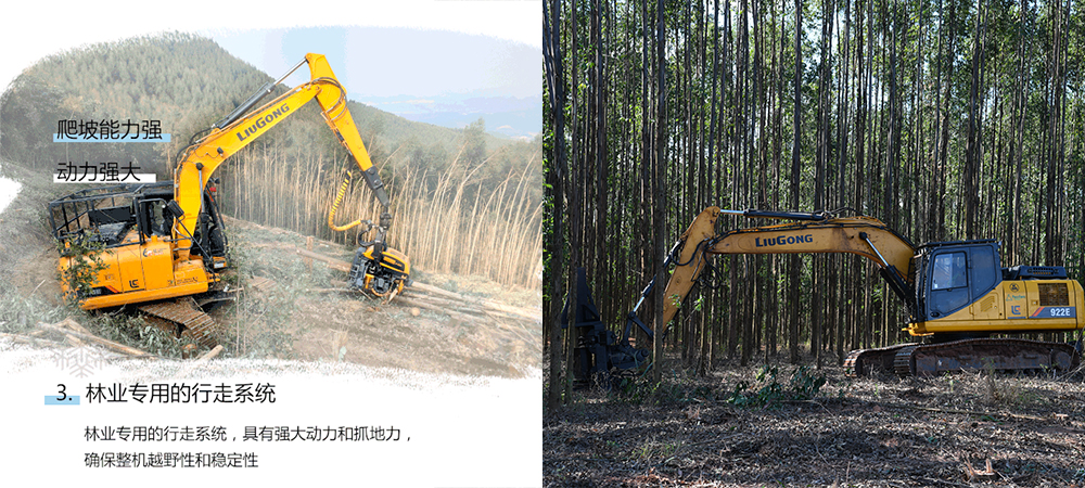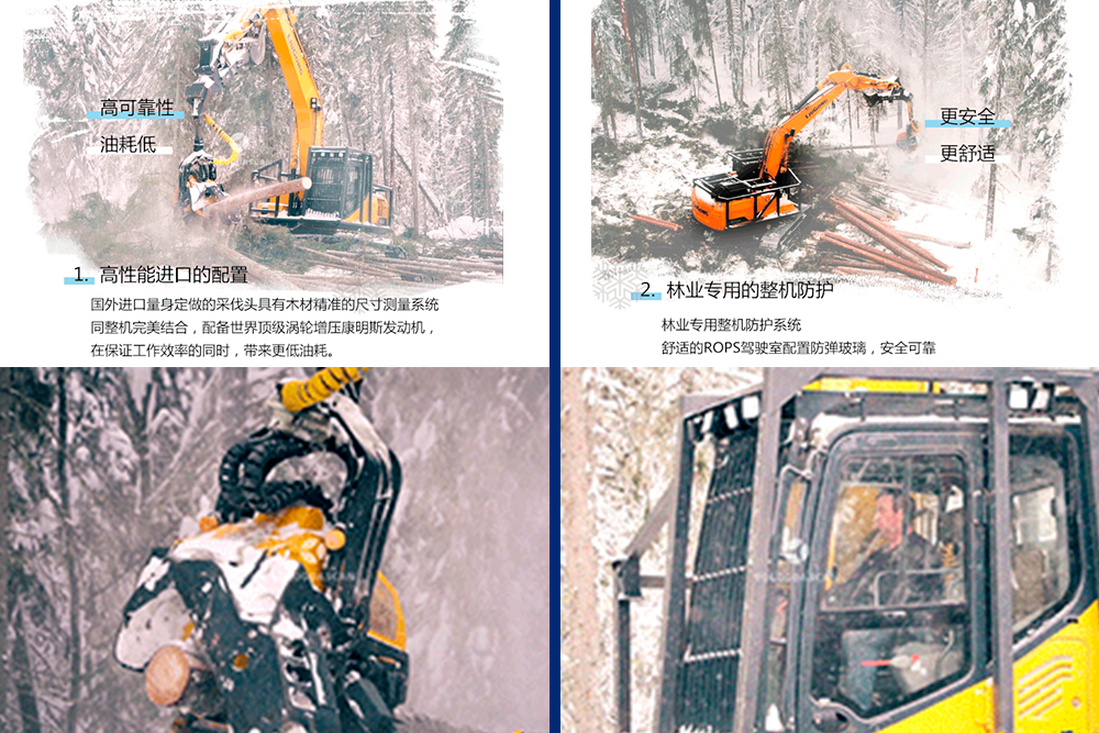 半岛电竞林业采伐机不仅继承了半岛电竞传统挖掘机的卓越性能,同时匹配林业专用的液压系统和防护系统,具备良好的操作舒适性和安全性,适用于林木采伐、造材、归堆。