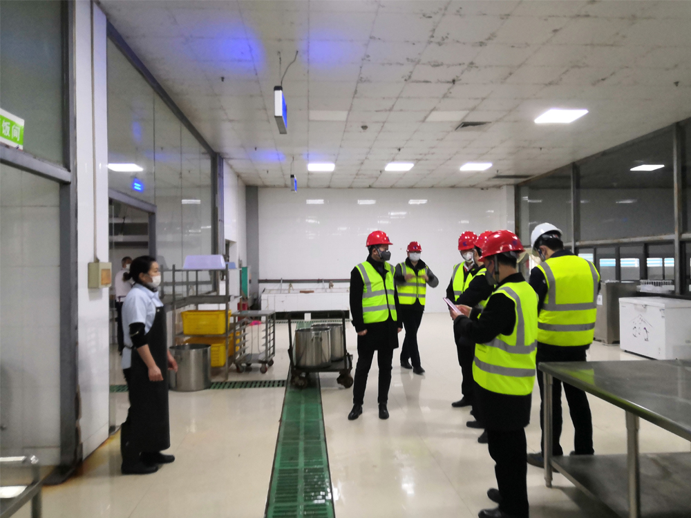 在职工食堂,黄海波与食堂工作者深入交流,详细了解该食堂消毒工作、工作人员在岗、疫情防控培训等情况。黄海波随后来到公司门卫进行检查,向工作人员询问安全保障方案,如对外来人员必须要测量体温,佩戴口罩才能进厂等。公司门卫处已配备好体温检测设备和设立临时隔开场所,一旦发现发热员工,立即引导到临时隔离区,上报公司HSE专业部门再进行医学管理措施。