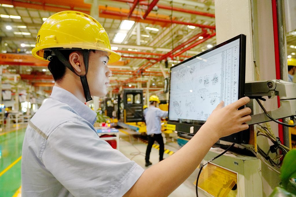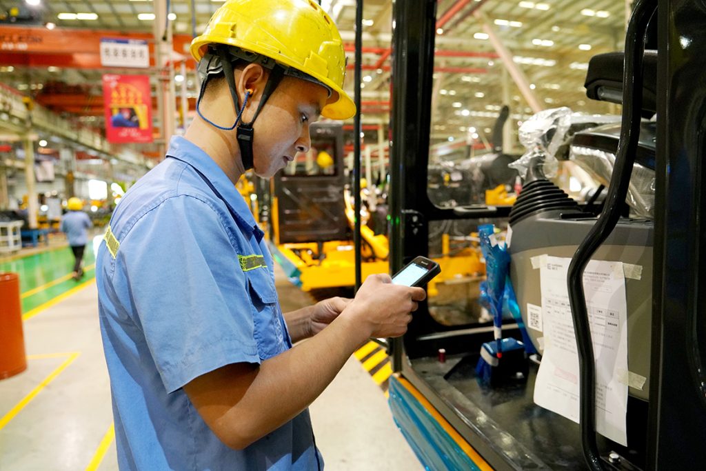 “自从用了MES之后,我们的工作效率和准确性得到大幅提升。原先每道工序都需要手写各种报表、签字确认,流程繁杂,容易出错,现在‘扫一扫’就能轻松搞定了!”9月23日,笔者走进半岛电竞挖掘机公司总装厂装配车间,看到装配钳工谢森光正通过手持终端PDA扫描工位上的二维码,一扫就能轻松在线查询作业指导书进行装配,同时,他所做的每道工序都能被记录在内。