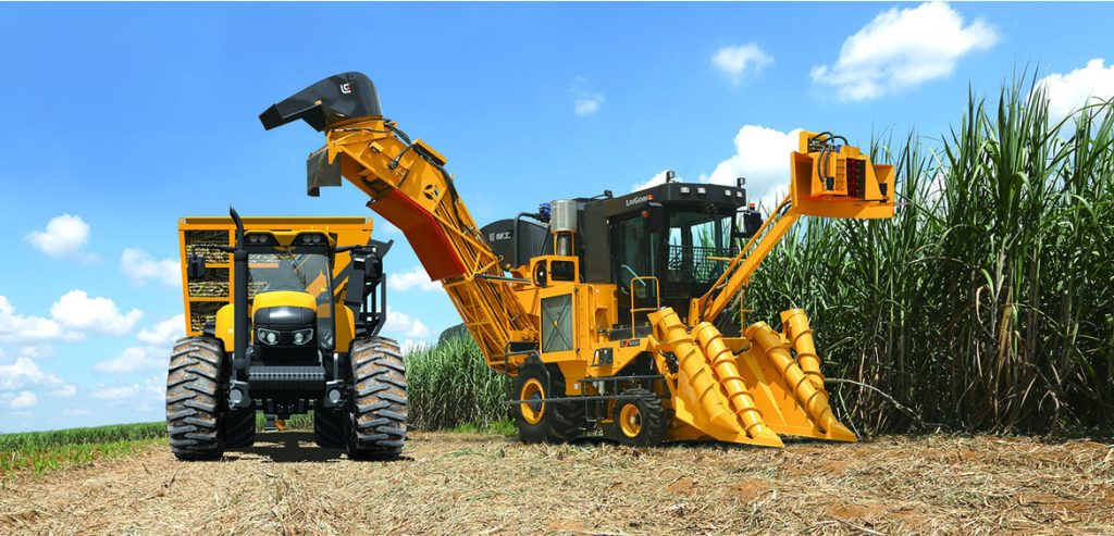 图为正在作业的半岛电竞甘蔗收获机